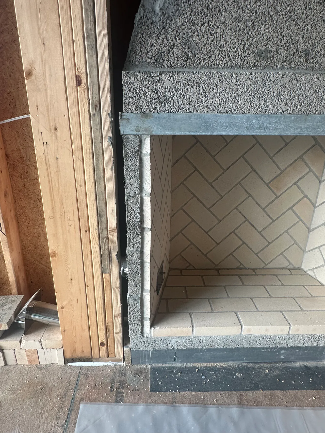 A newly built fireplace area in a Lansing, Michigan home, where Michigan Insulation Pros is preparing surrounding wall cavities for insulation to enhance energy efficiency and home comfort.
