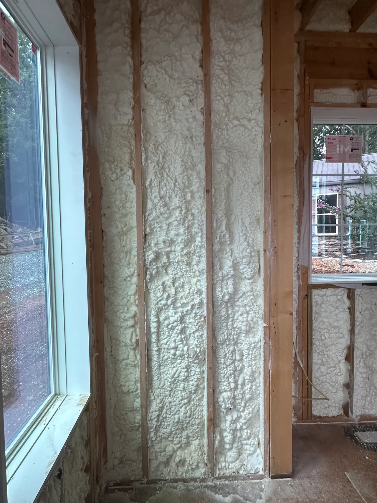 Close-up of interior wall cavities filled with spray foam insulation by Michigan Insulation Pros in a Michigan home.