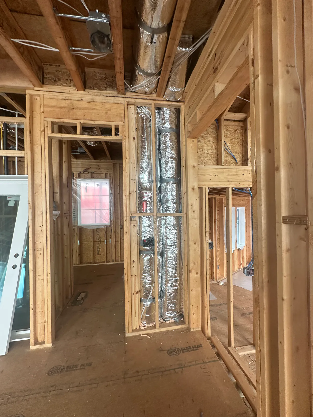 Framed interior of a Grand Rapids, Michigan home where Michigan Insulation Pros is preparing ducts and wall cavities for attic and wall insulation to enhance comfort and energy performance.