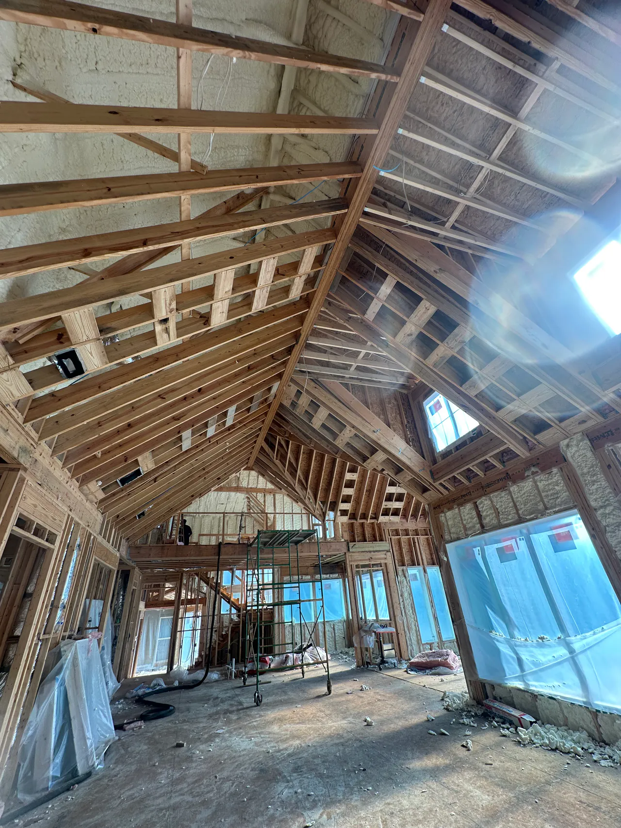 Michigan Insulation Pros performing a vaulted attic spray foam insulation installation in Grand Rapids, Michigan — sealing air leaks, boosting comfort, and maximizing energy efficiency.